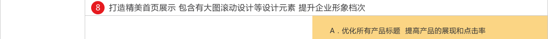 促销、店铺装修、产品卖点 、公司实力、成功案例、客户好评、产品销量、评价、打分、店铺交易勋章,等级需要做上去