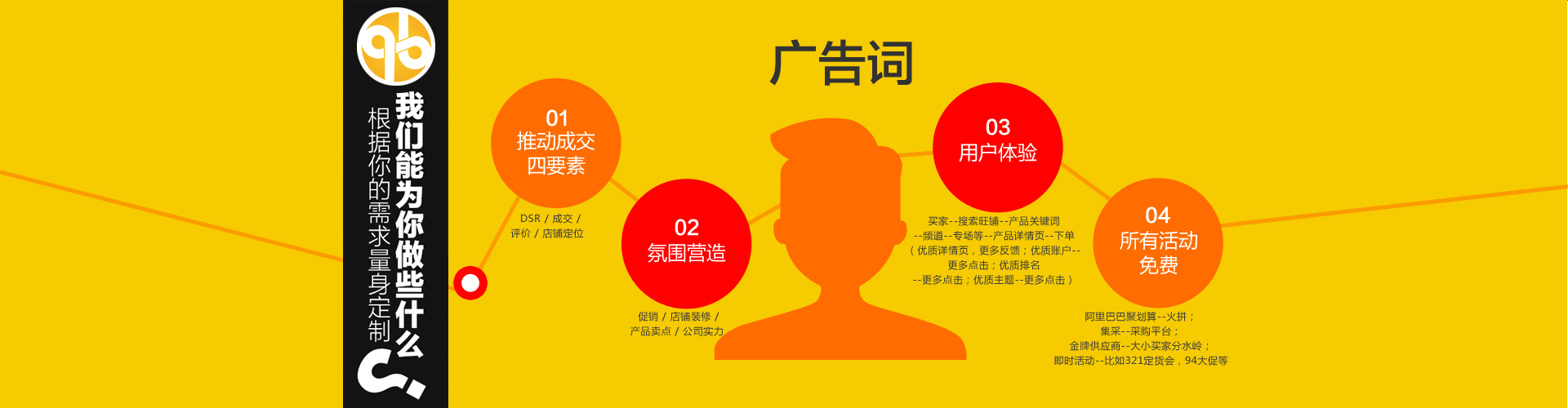参与与报名所有免费活动,如:阿里巴巴聚划算--火拼;集采--采购平台;金牌供应商--大小买家分水岭;即时活动--321定货会,94大促等